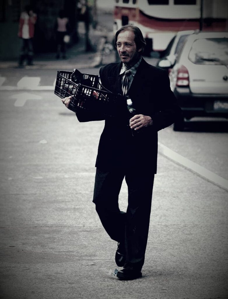En las entrañas del centro, la elegancia persiste como un acto de fe o de nostalgia. Personajes como Arístides Hernández y el mismo Castellanos recorren los mercados y plazas lanzando salmos al viento. Para ellos, el saco es la armadura necesaria para que el «bolo» detenga su tambaleo y el comerciante baje la guardia para escuchar la palabra de Cristo. El traje inspira el respeto que la calle a veces niega.